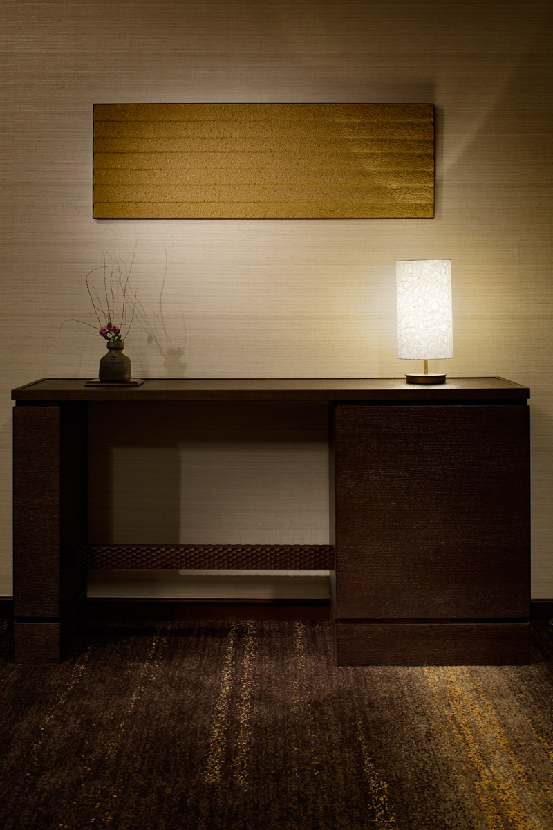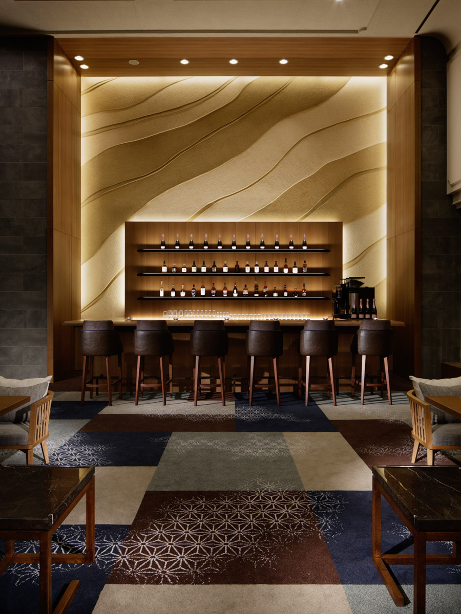 宿泊施設 グランドプリンスホテル高輪 2016年11月(東京都 港区) ディレクション A.N.D.設計 A.N.D.日本古来の和の要素と手仕事が落としこまれた品格のある空間客室内の壁とバーカウンターバック庭園の水面をイメージし左官を施しました 『グランドプリンスホテル高輪』ウェブサイト