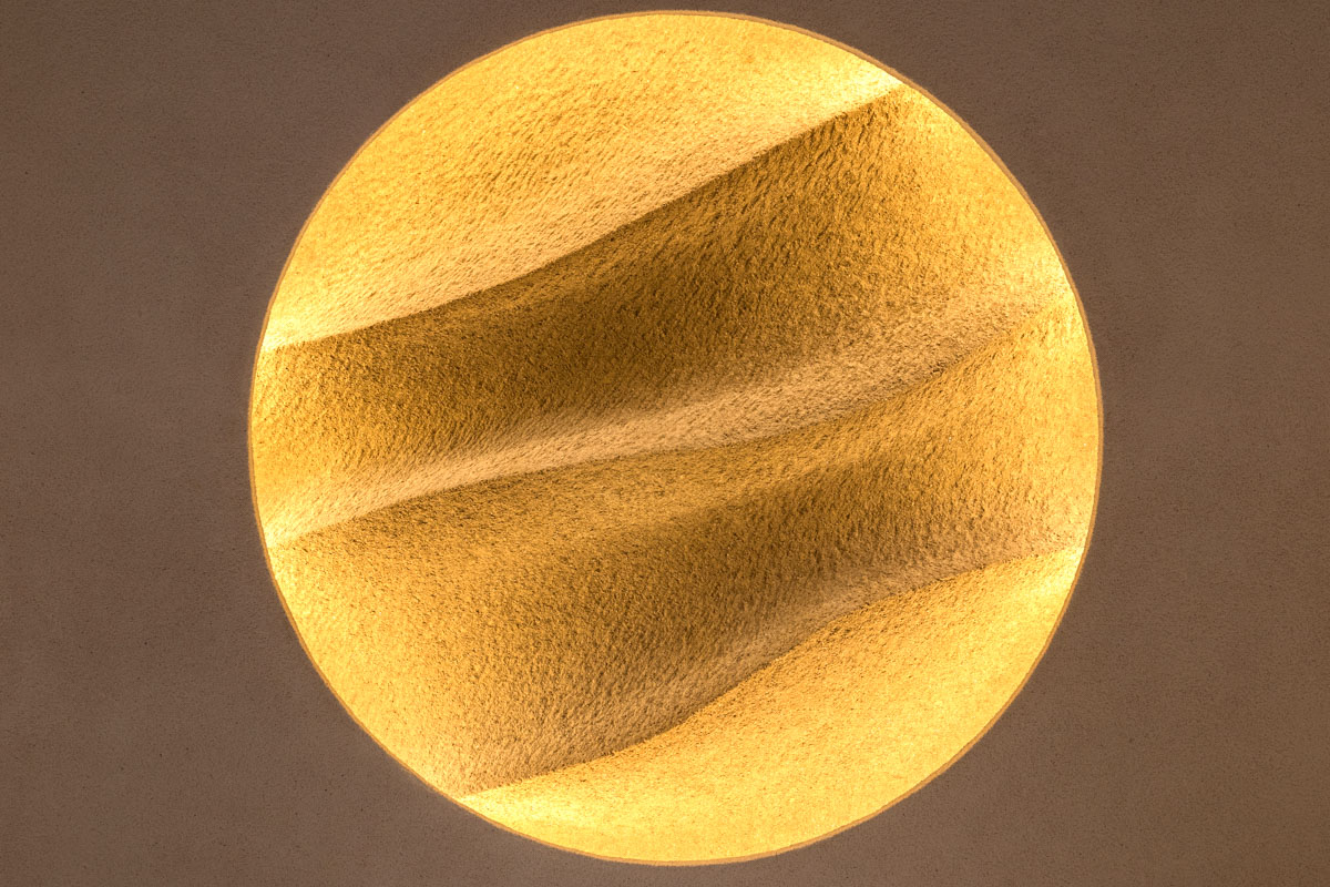 二階エレベーターホールにある円型のアートは月をイメージし満ち引きを表現しています