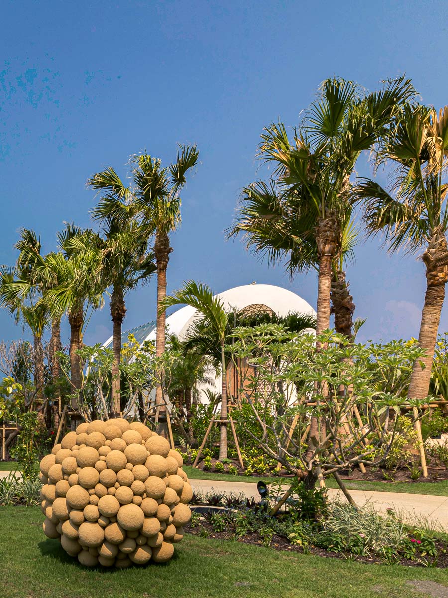 屋外には、土を一つ一つ丁寧に型取りして作り上げた大きなオブジェ