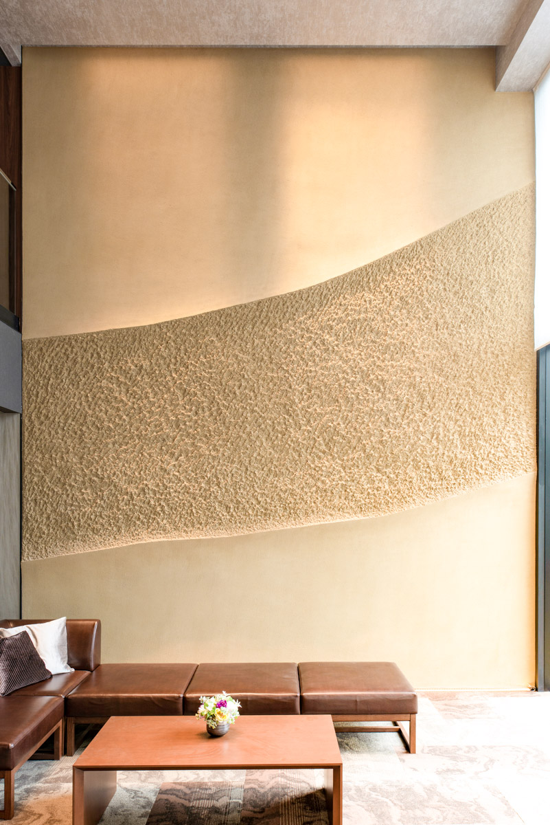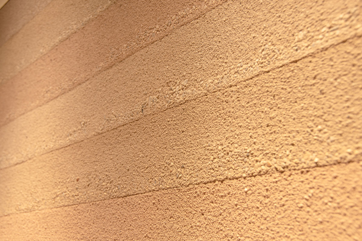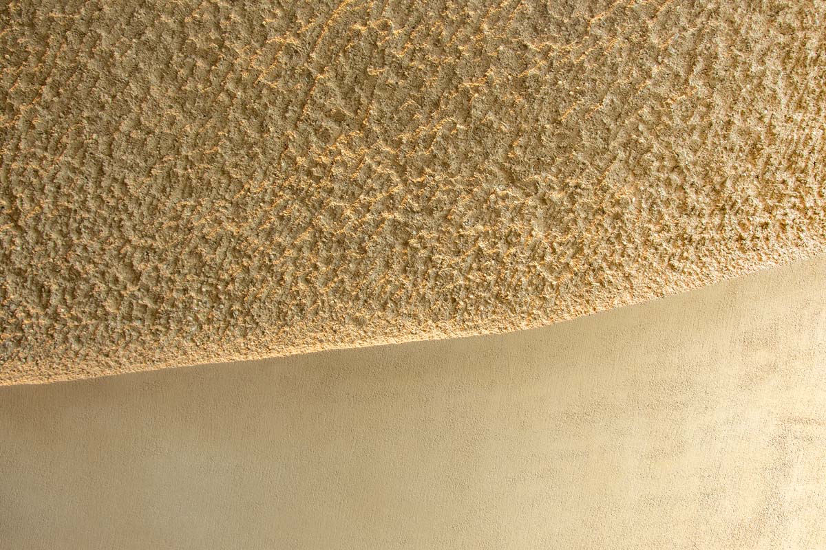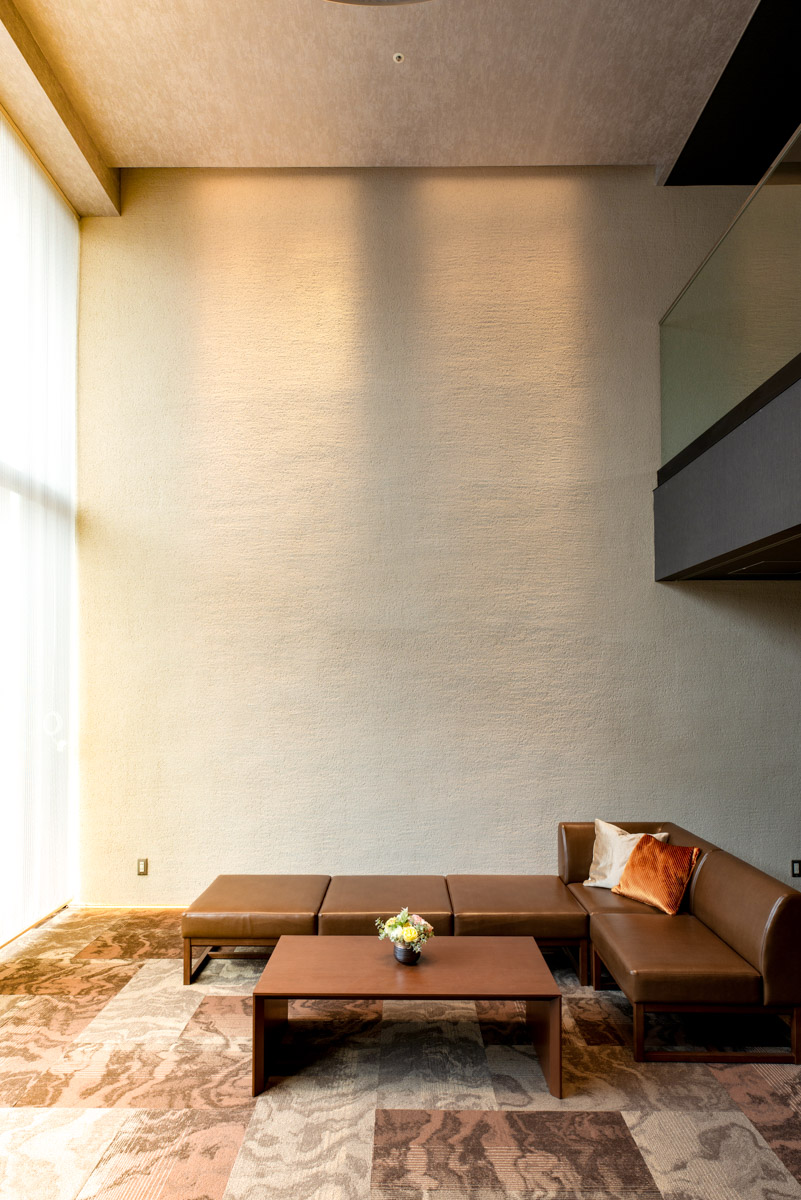 大きな窓から自然光がたくさん入る場所を活かし、土を使い表情豊かな壁に仕上げました。