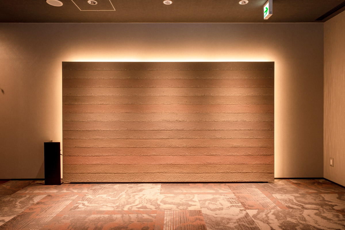 自然光と照明、日中と夜とで表情を変える壁が仕上がりました。