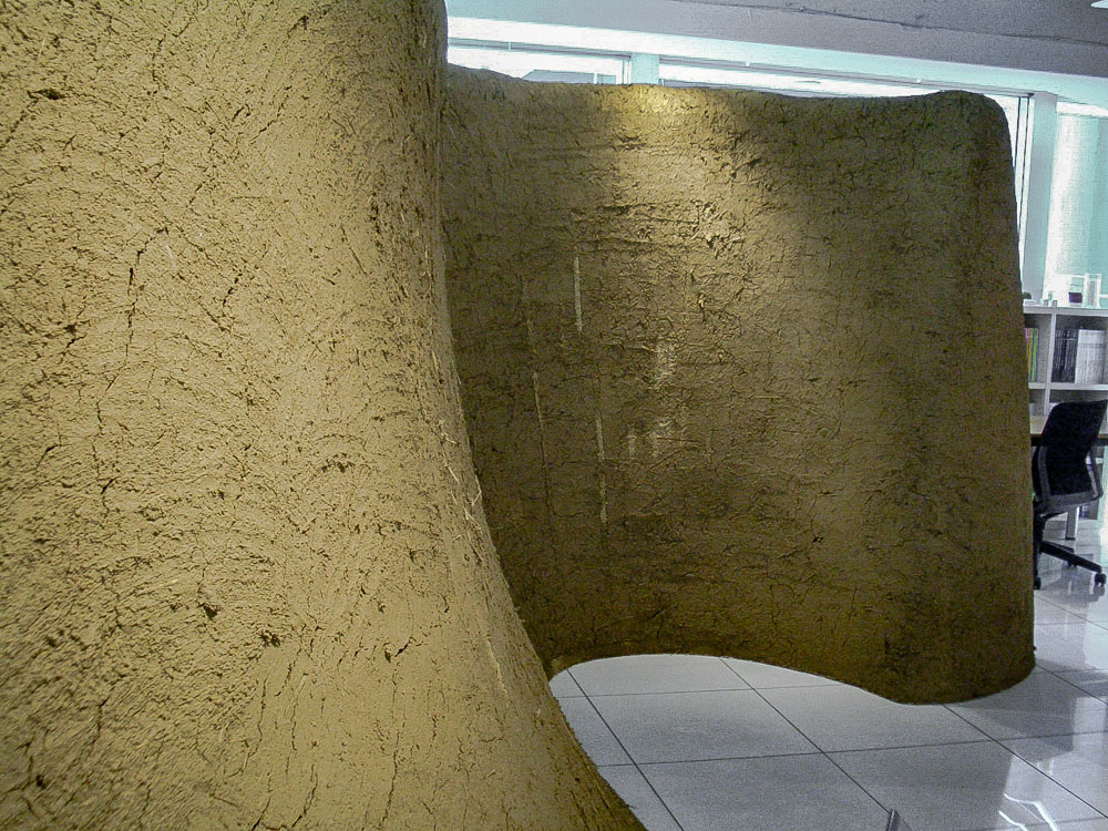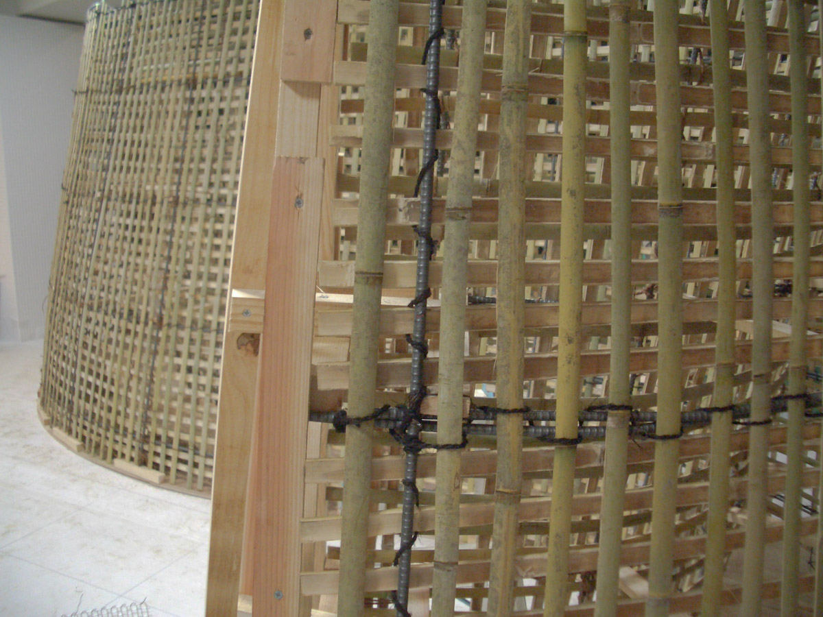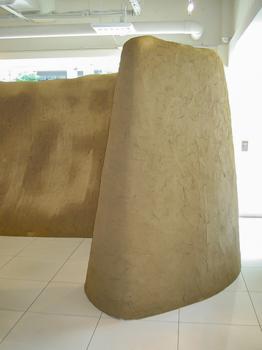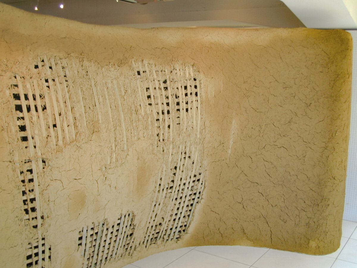 竹小舞を編んだ下地に粗壁を塗りつけたオブジェ