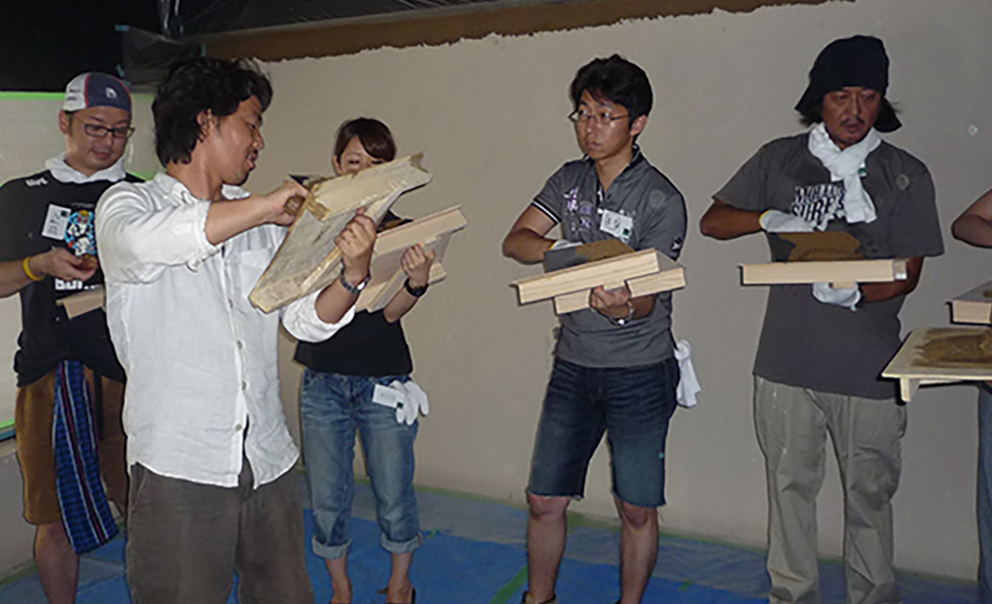 ワークショップ COCONOMA Season Dining 2012年7月(東京都港区) 2012年7月(東京都港区) 新しくオープンするレストラン「COCONOMA」の壁を、土という素材が好きな方、左官という技術に魅力を感じている方や建築をまなぶ学生さんと共に、ワークショップを開催しました。参加者の皆さんが丹精込めて塗った左官の壁が完成しました。