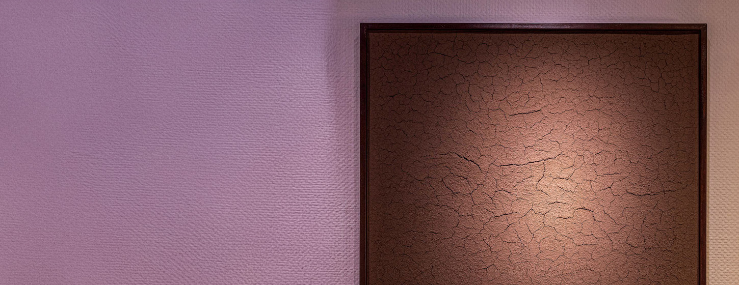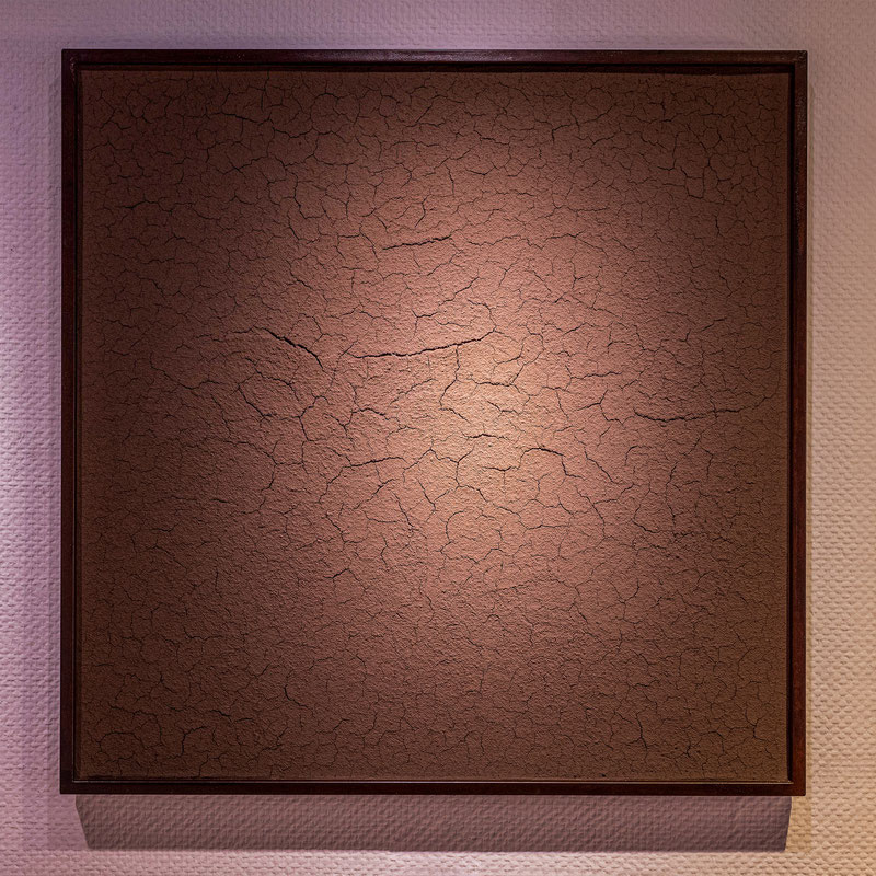 自然の景色の中でも見ることのできる土の罅雨が降れば土に戻り、乾けばまた違った罅の表情を見せます循環しながら、その姿を変えてゆく自然の風景の一時を表現しています