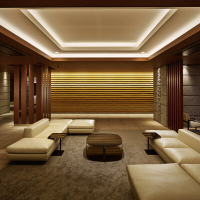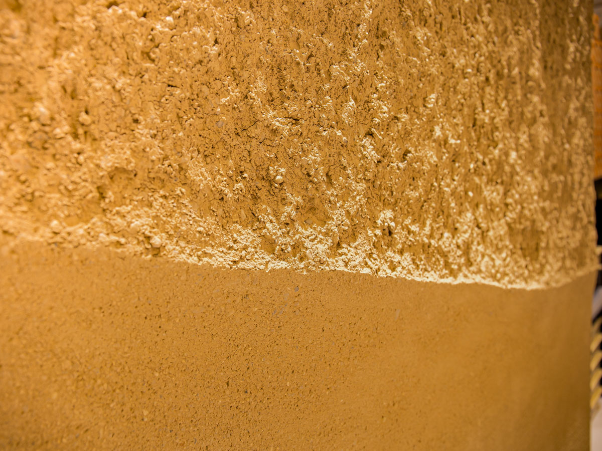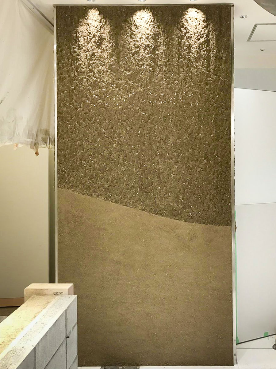 リーフパイのイメージで木の幹をデザインした版築などを施しました。
