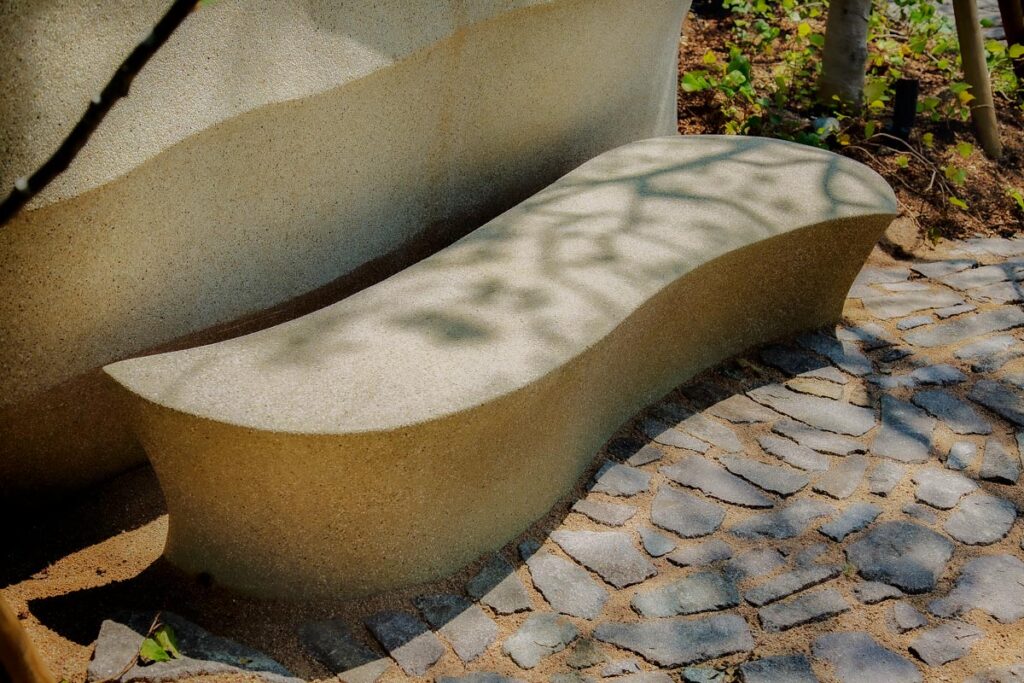 パティシエ エス コヤマ」の敷地内の「FANTASY DIRECTOR」横に2つのベンチを作成しました。