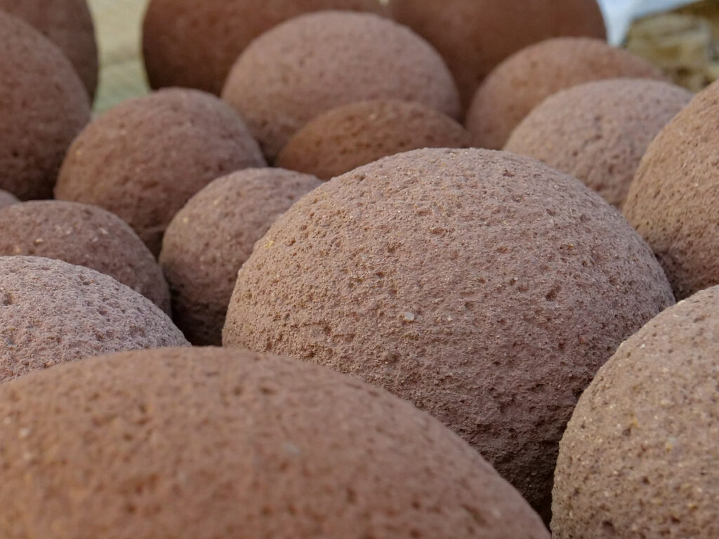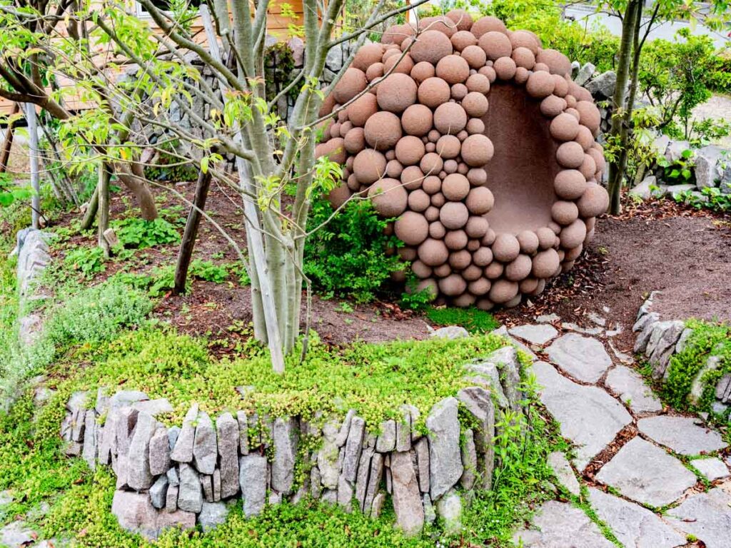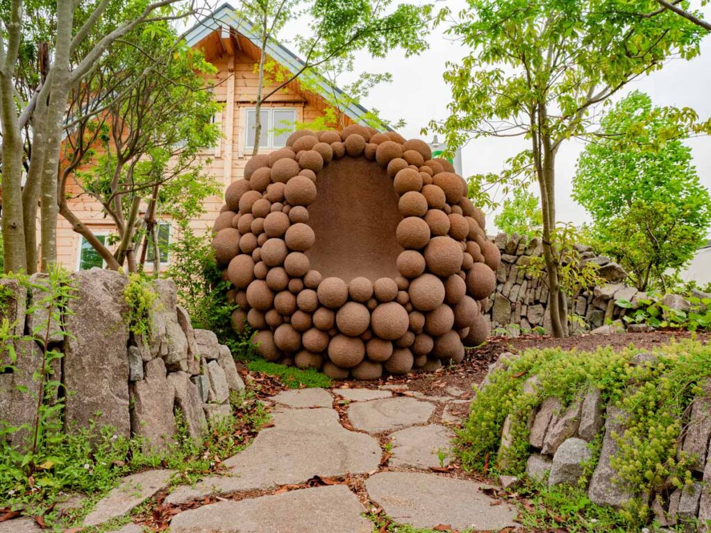 一つ目は、サイズの違う土の球体を一つずつ丁寧に作り上げ、ふわっと溢れる泡をイメージして