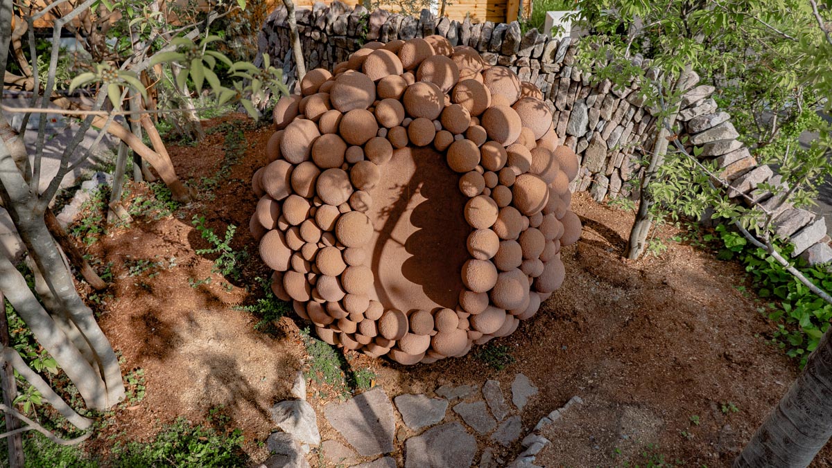 一つ目は、サイズの違う土の球体を一つずつ丁寧に作り上げ、ふわっと溢れる泡をイメージして