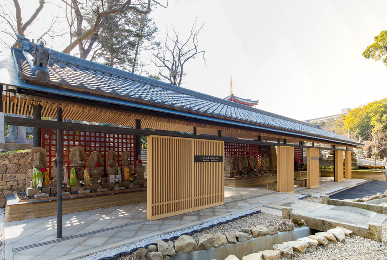 二つの御堂を行き交えるようそれぞれに向かう階段の中間地点