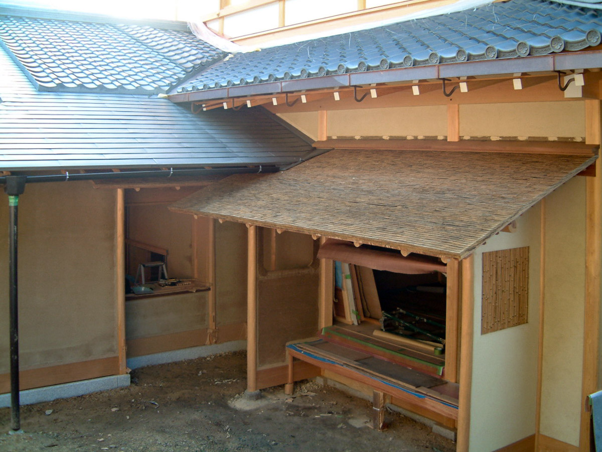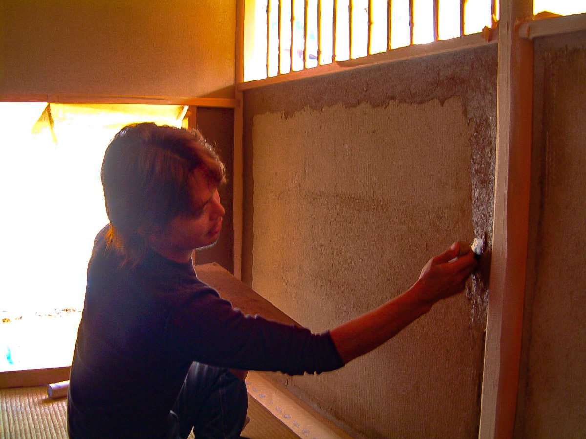 伝統的な左官工事の一つである茶室長い年月を耐え抜くよう丁寧に下地を作りかつ繊細に美しく見せる技術を要しました